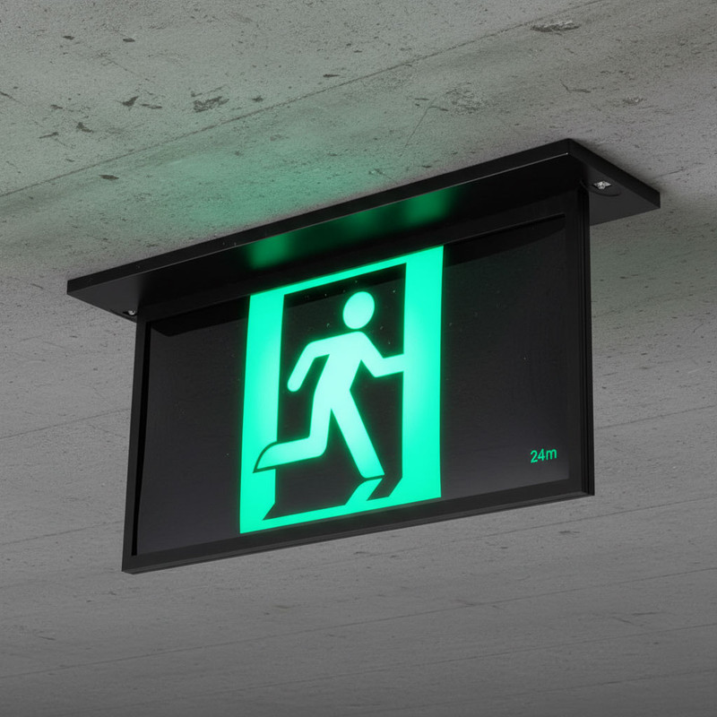 This commercial grade emergency exit light is designed to provide reliable and long-lasting performance in a wide range of commercial environments. Featuring an advanced LED module, this emergency exit sign ensures optimal visibility with a 24-meter viewing distance, making it ideal for spaces such as office buildings, hotels, shopping centers, and hospitals. The integrated emergency 2-hour battery pack allows the unit to operate independently during power outages, meeting the requirements of AS2293.1:2018 for emergency exit signs in low illuminance areas. With its durable design and robust battery life, this product guarantees a safe and efficient lighting solution during emergencies.