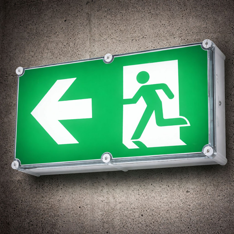 PICTOGRAM: Left arrow (we have identical versions of this exit light available with right arrow and with no arrow)