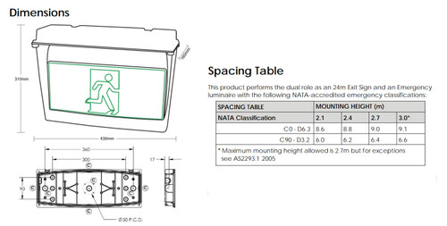 With a high efficacy LED strip fixed within the unit, this exit light delivers an impressive viewing distance of up to 24 meters, ensuring that it can be easily seen from afar, even in large open spaces. The unit operates on a 230V power supply (compatible with 240V), with a low power consumption of 4 watts in standby mode, offering an energy-efficient solution for long-term use. The battery management system, paired with an intelligent 3-stage charger, ensures the light is consistently ready for action, providing over 50,000 hours of reliable service life. During a power failure, the light maintains operation for more than two hours, adhering to the stringent requirements set forth in AS/NZS 2293 standards.